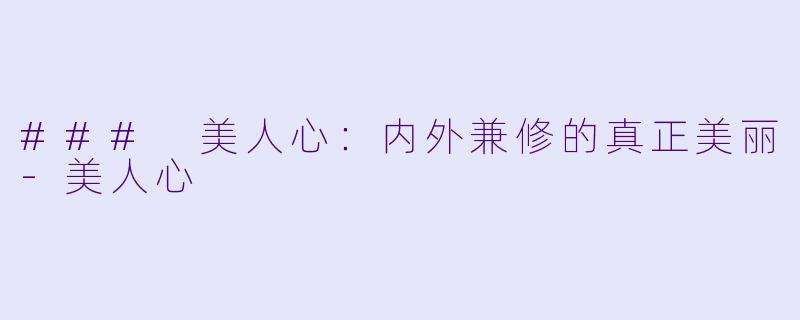 在这个充斥着外貌焦虑的时代,许多人将美丽等同于外表。然而,真正的美在于一个人的内心。所谓“美人心”,正是指与外貌相辅相成的内在品质。内心善良、宽容、有智慧的人,往往能散发出无形的魅力,吸引他人的注意。
