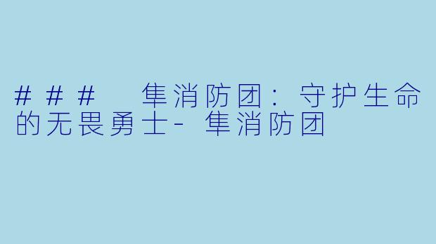 隼消防团是一支致力于保护社区安全的志愿消防团队。他们的成员来自各行各业,怀揣着对生命的尊重和对安全的责任感,主动参与到火灾预防和救援工作中。隼消防团不仅在火灾发生时第一时间赶到现场,还积极组织各类消防培训和宣传活动,提高广大居民的消防安全意识。