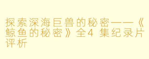 探索深海巨兽的秘密——《鲸鱼的秘密》全4集纪录片评析
