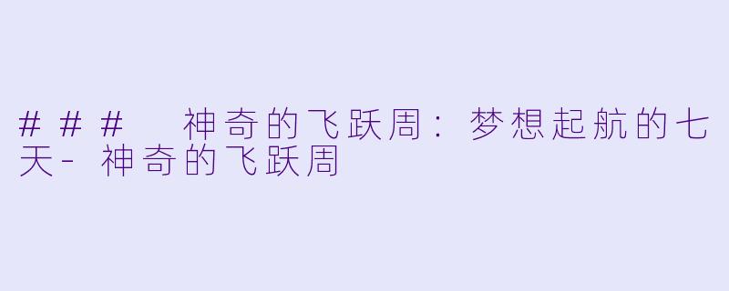 在这个神奇的飞跃周,每个人都在追求自己的梦想,每一个故事都充满希望与可能。这七天,注定让人铭记,让梦想在这里启航。