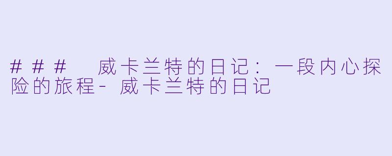 威卡兰特的日记,是一本记录他内心深处感受和思考的书籍。每一篇日志都如同他灵魂的窗口,透视着他在生活中的点滴感悟。日记中,威卡兰特用细腻的笔触描绘了他的喜怒哀乐,分享了对友情、爱情和人生的深刻理解。