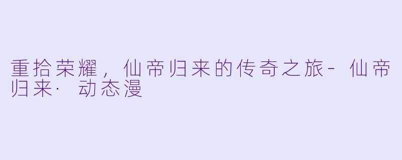 在浩瀚的修真世界中,传说中的仙帝因缘故陨落,留下诸多悬念与遗憾。然而,一场意外的事件让他再次重返人间。《仙帝归来·动态漫》便是讲述这一传奇故事的精彩作品。