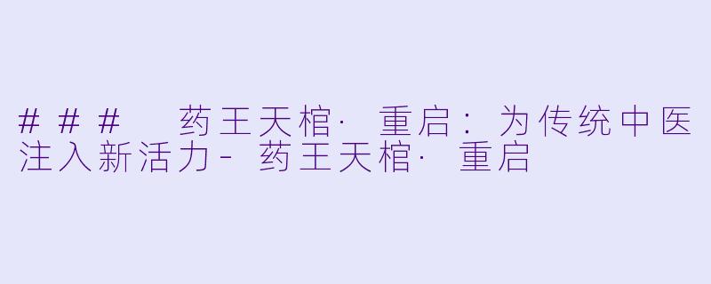 近年来,随着人们健康意识的提升,传统中医逐渐受到重视。而“药王天棺·重启”这一理念,恰如其分地体现了对中医药文化的传承与创新。作为一种古老的医疗体系,中医不仅蕴藏着丰富的理论与实践经验,更蕴含着深厚的文化底蕴。