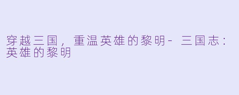 《三国志:英雄的黎明》是一款以三国时期为背景的策略游戏,它让玩家能够深入体验这一历史时期的风云变幻。在游戏中,玩家可以选择不同的国家和将领,体验各自的传奇故事。通过资源管理、军队建设和策略布局,玩家不仅要应对敌方的攻击,还要进行外交和联盟,以求在动荡的局势中稳固自己的霸主地位。