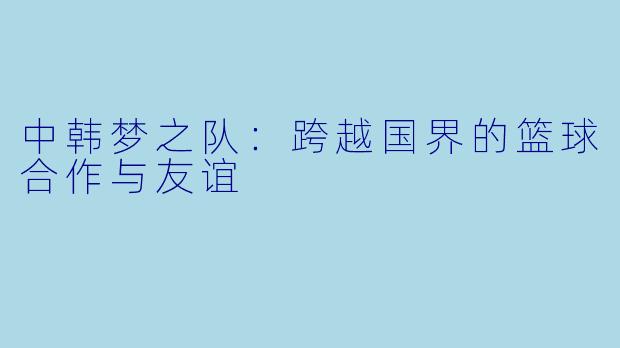 近年来,中韩两国在体育领域的合作日益增强,特别是在篮球项目上,双方携手打造的“中韩梦之队”引起了广泛关注。这支队伍不仅汇聚了中韩顶尖篮球运动员,还将两国的文化和理念结合,使其成为一支富有魅力的国际团队。
