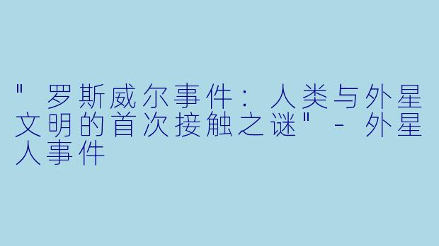 "罗斯威尔事件:人类与外星文明的首次接触之谜"