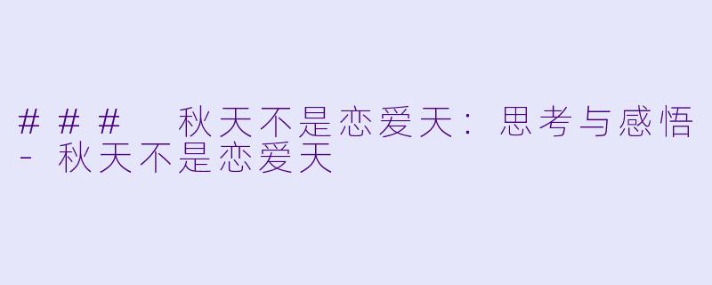 ### 秋天不是恋爱天:思考与感悟