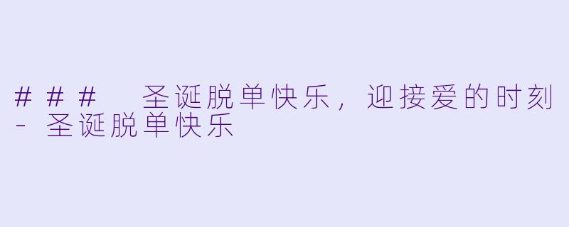 所以,在这个灿烂的圣诞节,让我们以一种积极的心态,迎接脱单的快乐与爱的到来。祝愿每个单身的小伙伴都能在这个温馨的节日里找到属于自己的幸福!