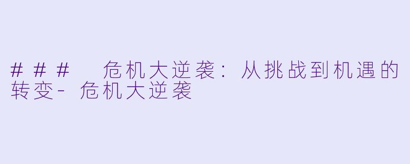 危机,无疑是对个人和企业最严峻的考验。然而,正是在危机中,我们常常能够发现意想不到的机会,迎来大逆袭的时刻。无论是全球经济衰退、疫情暴发,还是自然灾害,危机带来的不仅是困扰和挑战,更多的是推动变革与创新的动力。