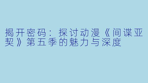 揭开密码:探讨动漫《间谍亚契》第五季的魅力与深度